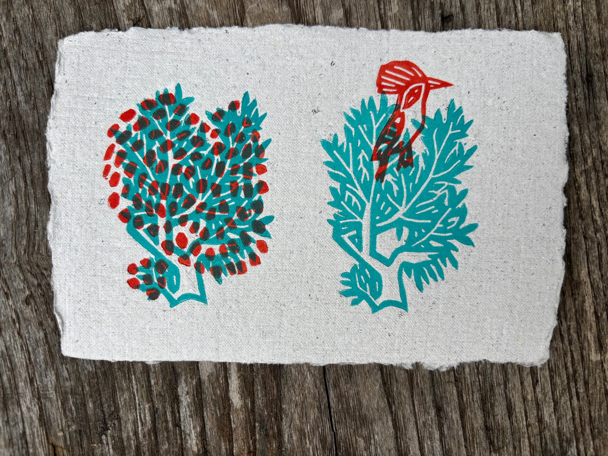 Chaque tirage est unique et peut avoir des nuances. Cela fait le charme de la linogravure.